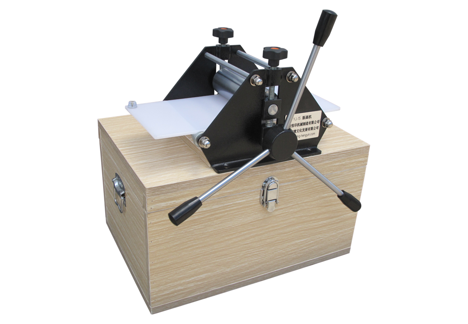 YJ-07 版畫機 用于銅版、木版、凸版和雙色板等印制高品質(zhì)版畫的機型。 版面有效尺寸1000×600mm,可以完全滿足對張紙幅面版畫印制需求。 整體式墻板采用加工中心加工,滾筒經(jīng)精密研磨和鍍鉻,高強度鋁合金版床,機體表面靜電噴涂處理。壓力調(diào)整標(biāo)尺指示。 以人為本的設(shè)計理念,機器尺寸上可方便進入電梯和普通居室門,全機裝配有高承載萬向腳輪,可方便推動、調(diào)節(jié)平衡及固定。機器箱體可以放置工具,器材等。 |