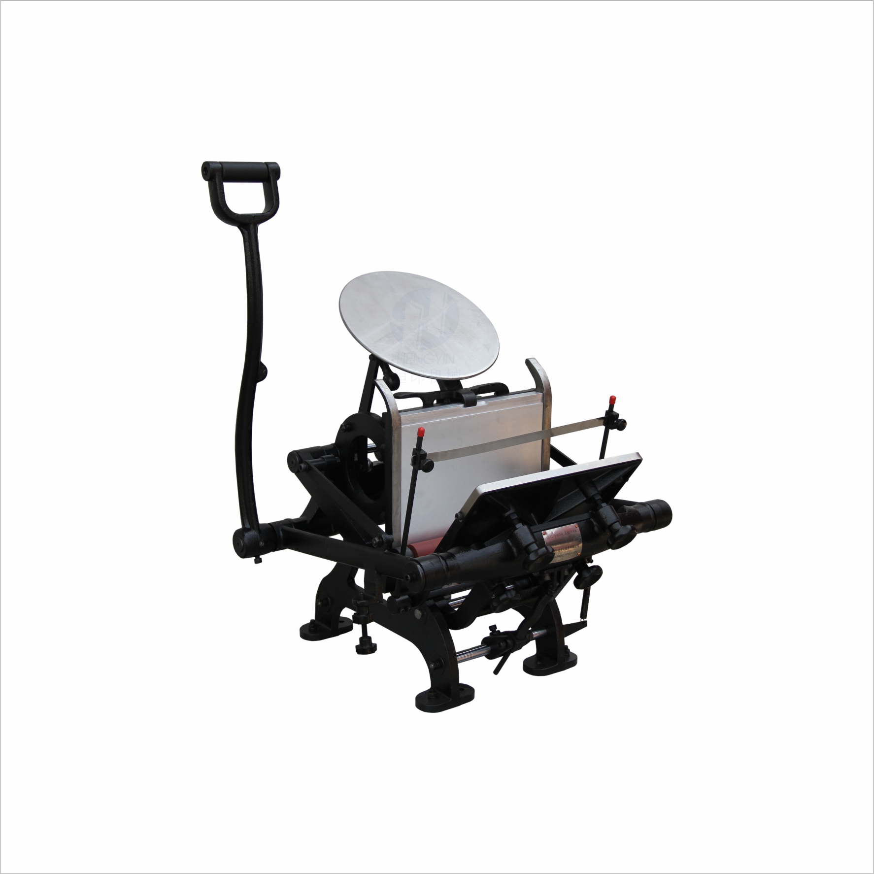 YJ-09A 仿古手扳鐵制印刷機 仿古手扳鐵制印刷機是參照19世紀進入中國的印刷機為原型制造。 可供活版打樣和銅鋅版、樹脂版、木口木刻等印刷。 版面尺寸: 300×460mm 機器重量:380kg 外形尺寸:1300×700×1770mm ※仿古墨臺為選購件。 |