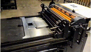按下壓力分離機構(gòu)手柄,壓印滾筒在轉(zhuǎn)動過程中不與印版施加壓力。 |