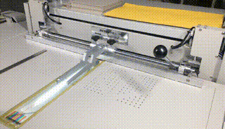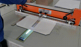 | 制作臺(tái)歷架演示 在SK840A書(shū)殼機(jī)上更換定位擋塊,就可快速批量完成標(biāo)準(zhǔn)臺(tái)歷架的制作。 |