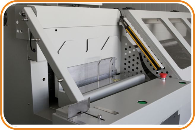 紅外安全裝置 放入書芯后,操作人手部離開檢測區(qū)即可自動運行,確保書芯 |