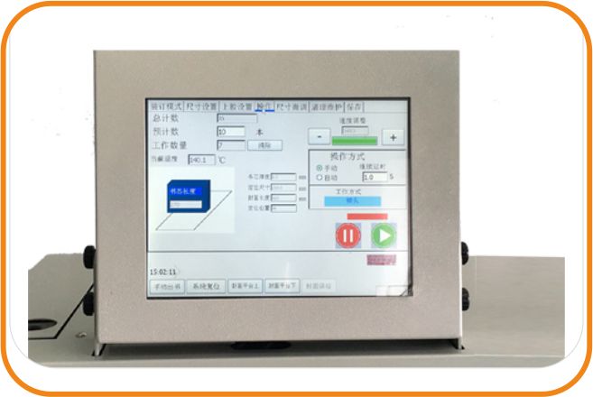 人機交互界面,中文文字與圖像相結(jié)合顯示10吋觸控主控彩屏,銑背深度、底膠和側(cè)膠量大小、壓痕位置和深度、斷膠位置、方圓脊等均可方便設(shè)定調(diào)整,具備操作記錄、數(shù)據(jù)存儲、工效統(tǒng)計等功能。