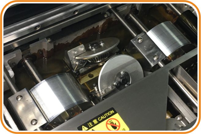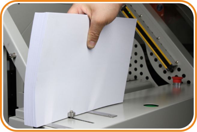 書芯放入夾書器,即可自動檢測書芯厚度,并實時完成所有工位的定位調(diào)整,無需人工干預(yù)。操作區(qū)設(shè)有外紅檢測安全裝置。